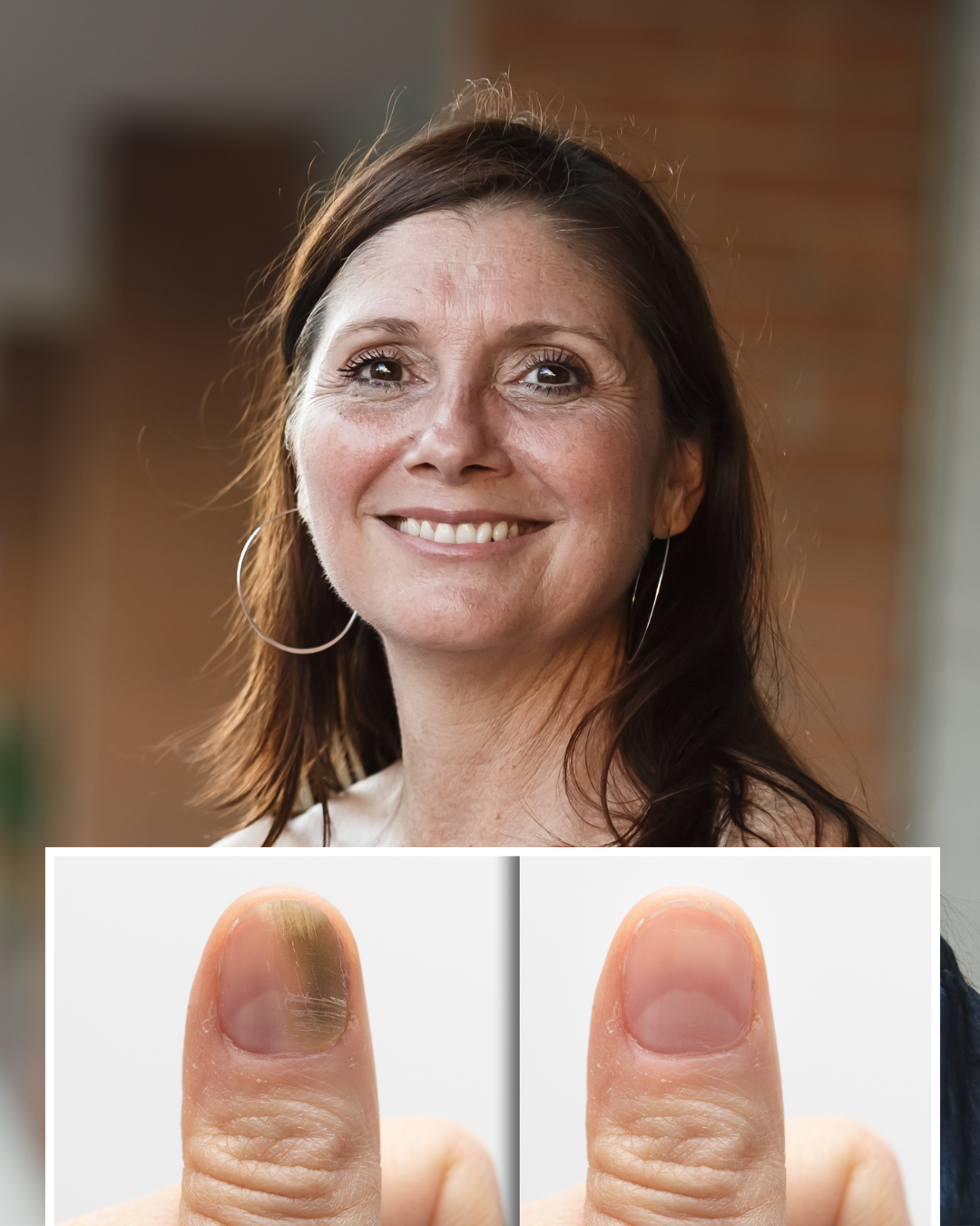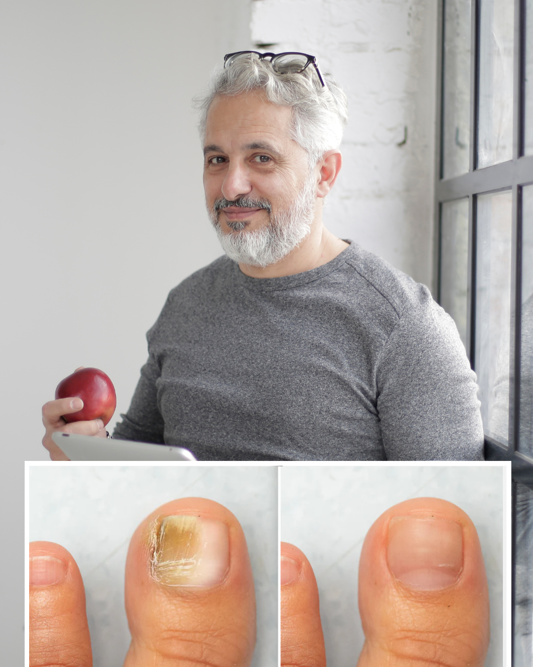 "Ich habe schon bestimmt 100 Sachen ausprobiert, und das scheint das Erste zu sein, was wirklich wirkt und hilft. Der Nagel wächst das erste mal seit Jahren normal nach. Der infizierte Teil zerbröckelt langsam. Es dauert. Man muss sicher etwas Geduld haben."